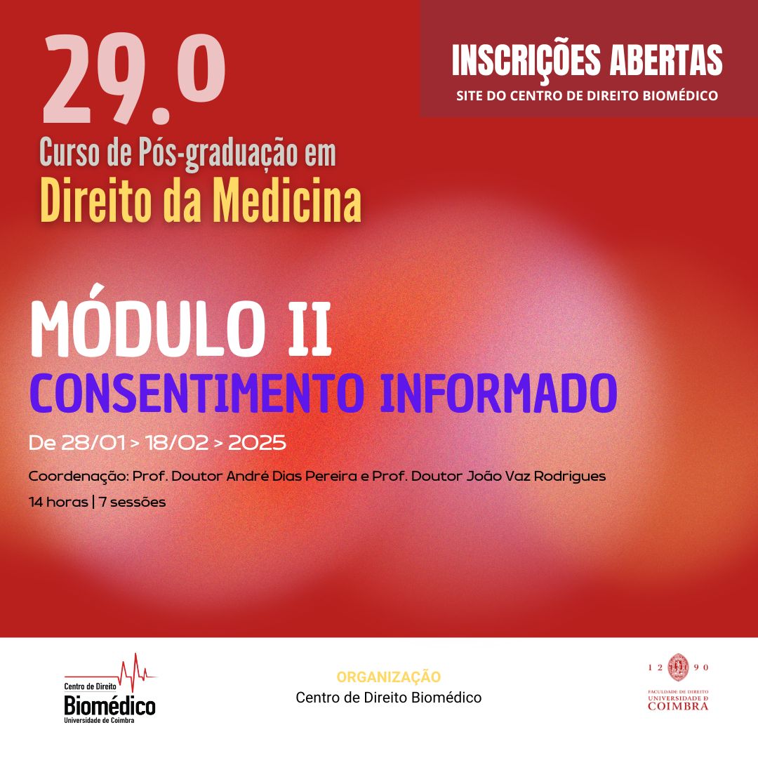 O valor por módulo encontra no programa do curso (inscrição por módulos), na última página. Ao fazer a inscrição deverá liquidar apenas o valor correspondente ao respetivo módulo. Para maiores informações não hesite em contactar o secretarido do Centro de Direito Biomédico.