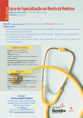 Informações: Secretariado do Centro de Direito Biomédico - cdb@fd.uc.pt