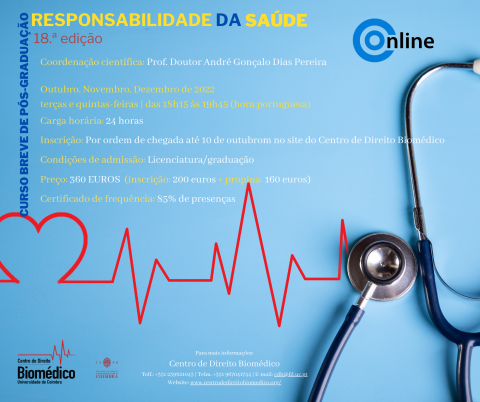 Inscrição: Por ordem de chegada até 10 de outubro. no site do Centro de Direito Biomédico